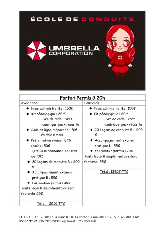 ® 20 Leçons de conduite B : 1100 facturée :55€